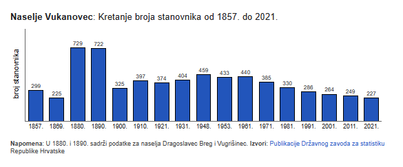 Na popiso stanovništva 1880. i 1890. leta je popis delan po katastarskim općinama, pa je preti statistiki broj stanovnikof vu Vukanovcu s 225 kuliko ih je bilo 1899. leta noglo na popisu 1880. lete skočjo na 729 stanovniki, znači tripot već nego na popiso predi. To je zapraf bila obnova pote veliko potresa 1738. leta.
